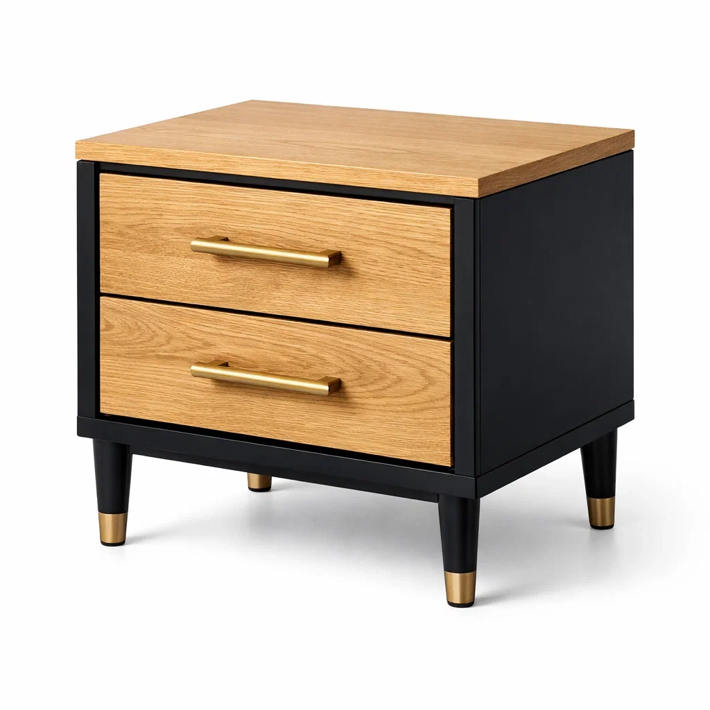 Comodino in legno di quercia e mdf con maniglie in ottone