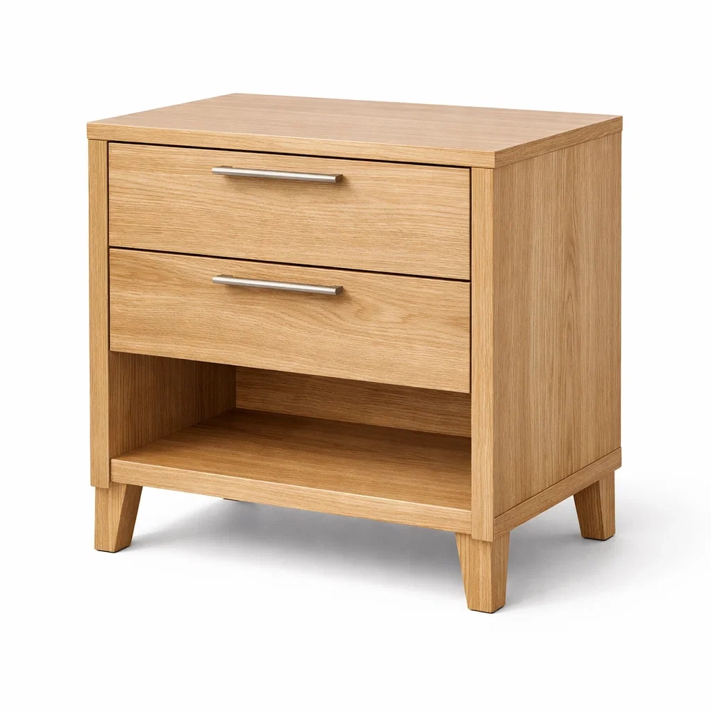 Comodino realizzato in legno di rovere chiaro.