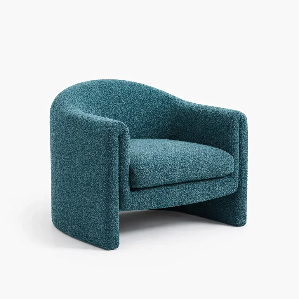 Poltrona in tessuto bouclé con struttura in legno compensato